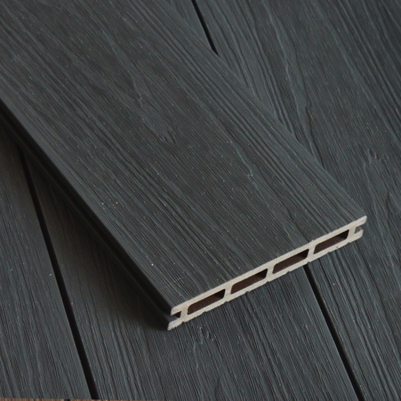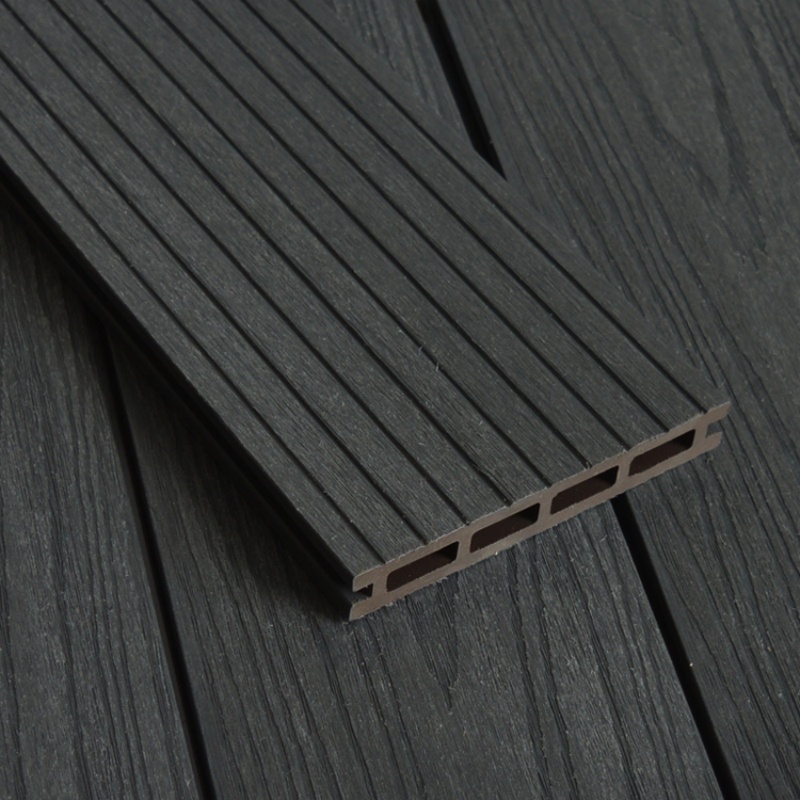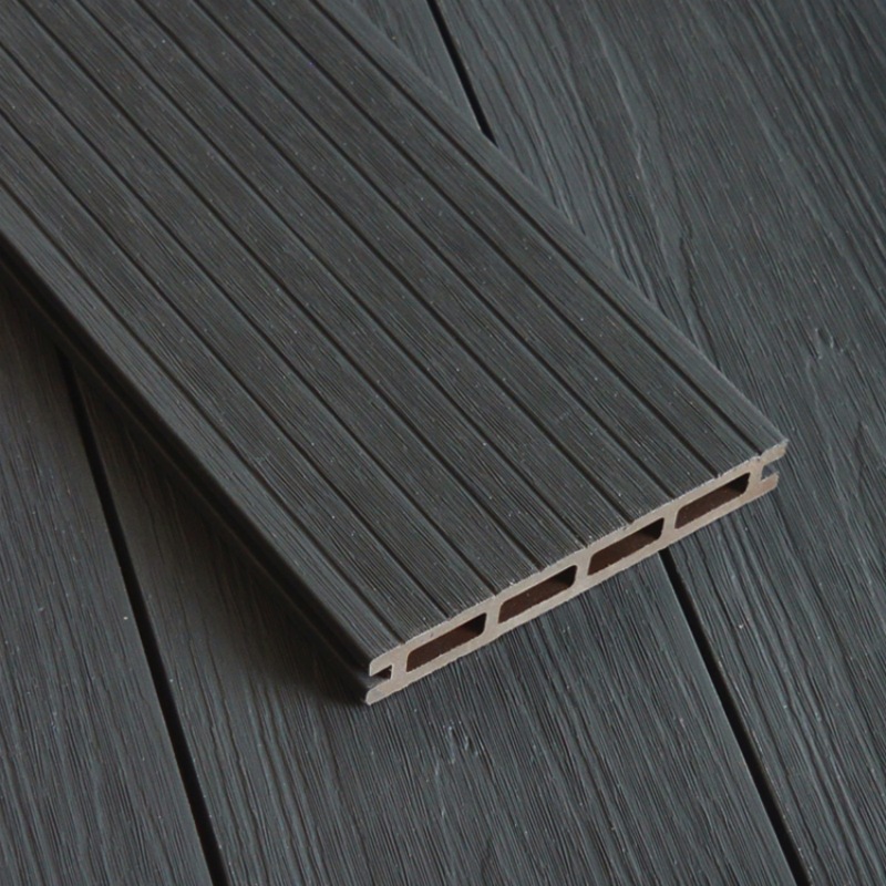 Terrasse extérieure en WPC co-extrudé couleur anthracite à trous carrés